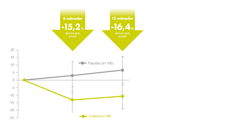 Time2-studien visade att behandling med Tostrex gav en signifikant minskning av: